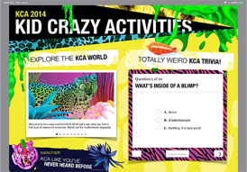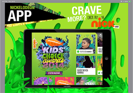 The iBook opened up new digital opportunities for Nickelodeon and all of the Kids Choice Nominees. The Info hotspots on every page contained a variety of playable media, increasing artist exposure, and each nominee had pop-up pages that directly linked to iTunes purchasing.